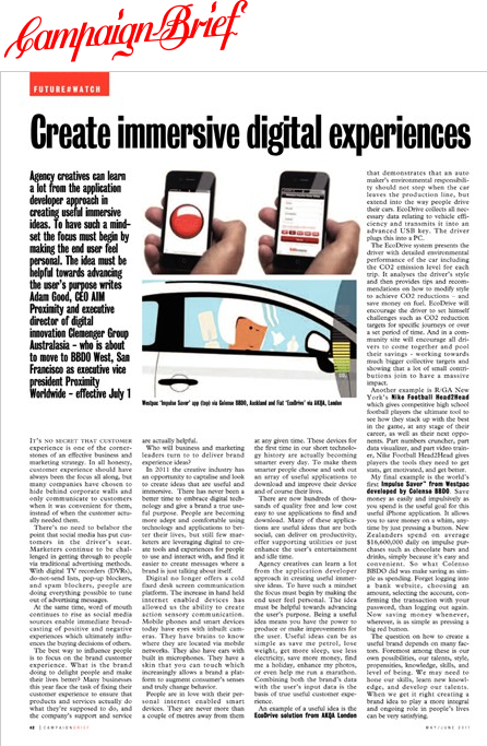 The idea must be helpful towards advancing the user’s purpose writes Adam Good, Executive Director of Digital Innovation Clemenger Group Australasia – who has just relocated to San Francisco as Executive Vice President of Proximity Worldwide.