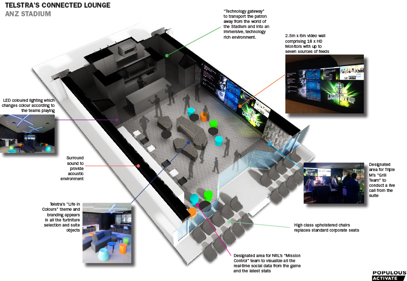 The Telstra Connected Lounge is setup as a blueprint of how we’ll continue to deliver on our Connected Stadium strategy, and how we’ll engage with customers and fans through digital channels.