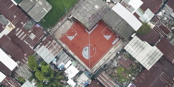 The world’s first non-rectangular football field has been constructed in the community of khlong toei, a densely populated area of Bangkok, Thailand