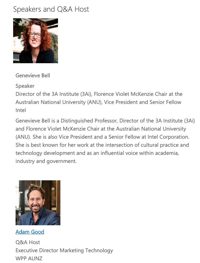 What is Artificial Intelligence, and why should you and your organisation care? Our AI Masterclass for Marketers identifies key AI building blocks and think critically about them. Facilitated by Professor Genevieve Bell Australian National University. Register Now